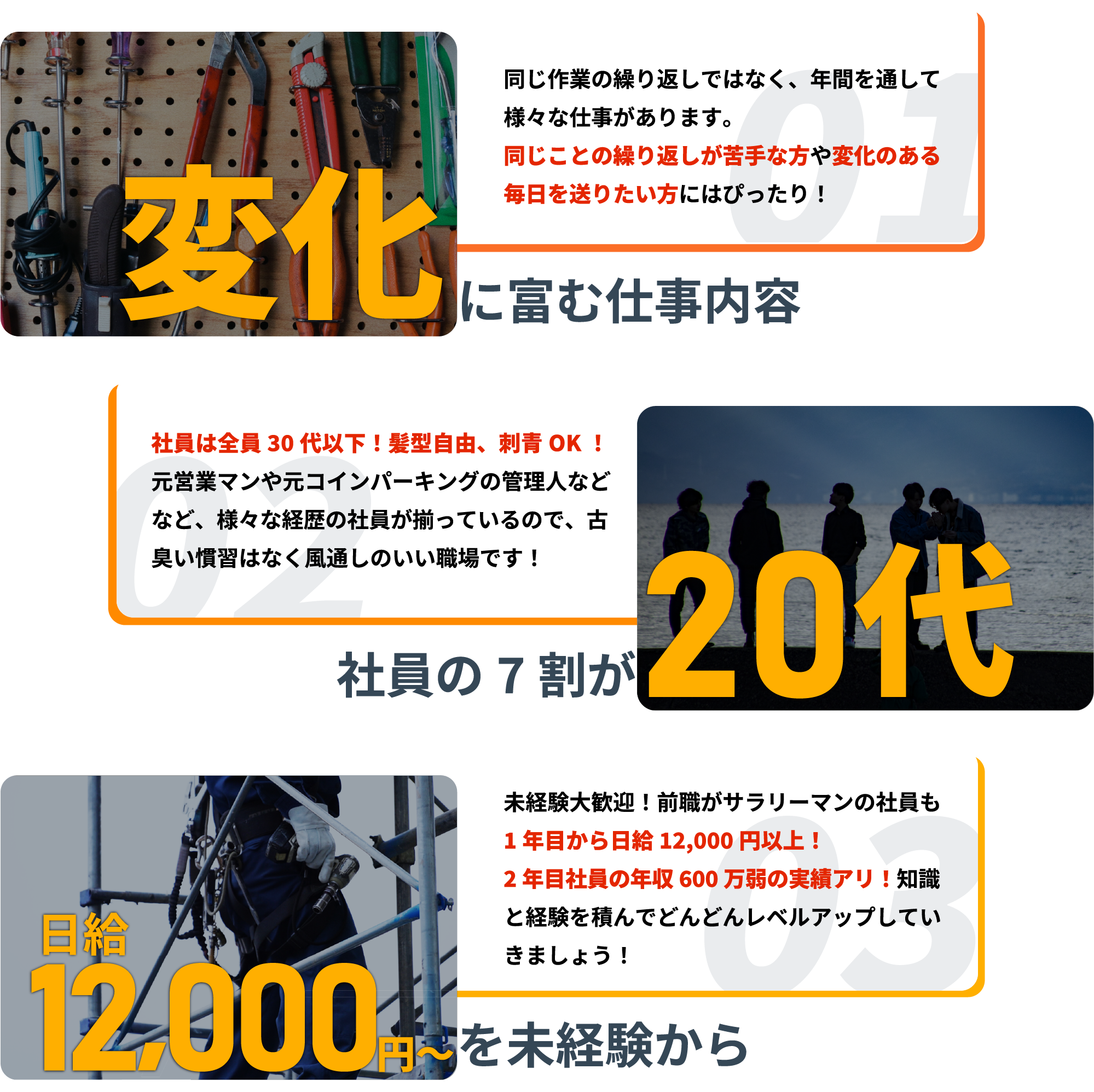 | 応募資格 | 未経験歓迎・学歴不問 |